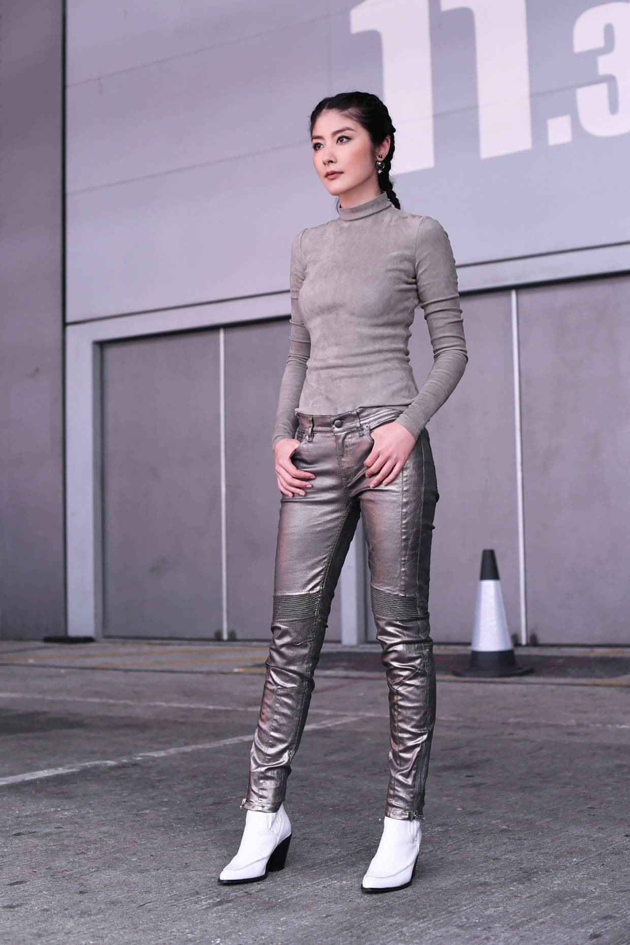 套装穿搭会帮助我们节省很多时间,如果你不知道应该如何搭配,也可以来尝试这种比较简单的同色系造型。像陈慧琳选择这件灰色的打底衫以及银灰色的皮裤,颜色统一协调会觉得很时髦,而且灰色也是一种比较低调的色彩,穿在身上让整体看起来很优雅。